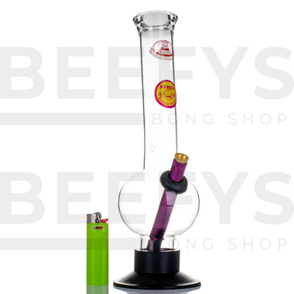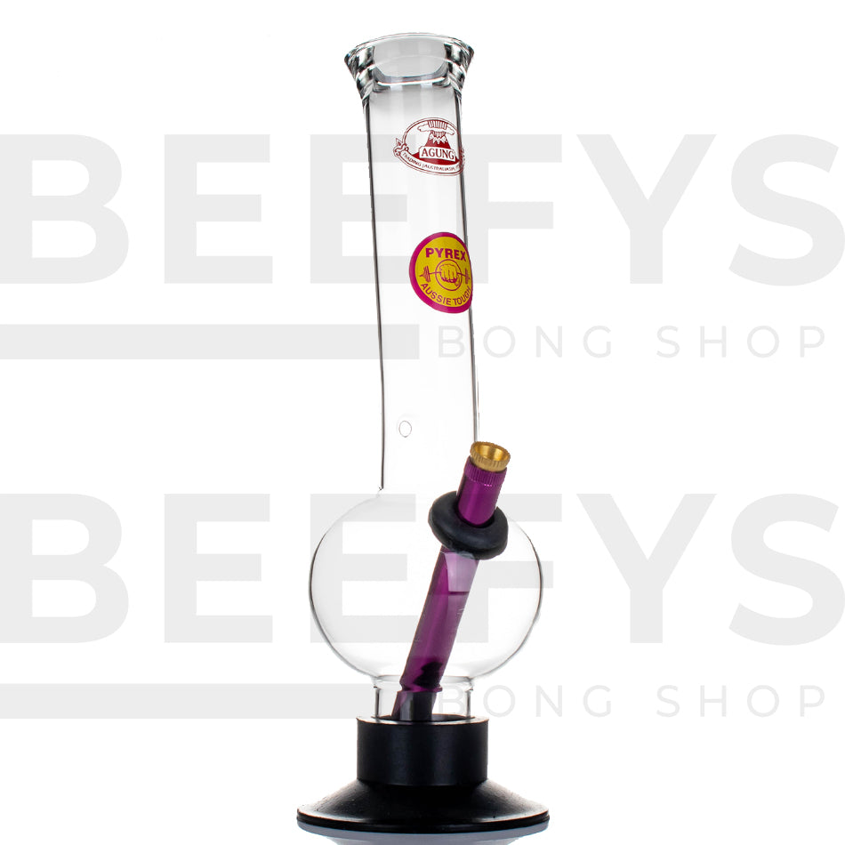 The Agung Chong Glass Bong measures 32cm in height and is crafted from sturdy Pyrex glass. This particular shape is a popular choice among Australian-style rubber base bongs, thanks to its blend of functionality and visual appeal.