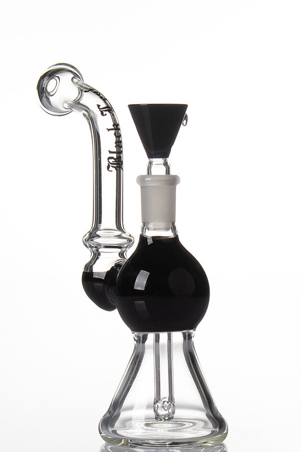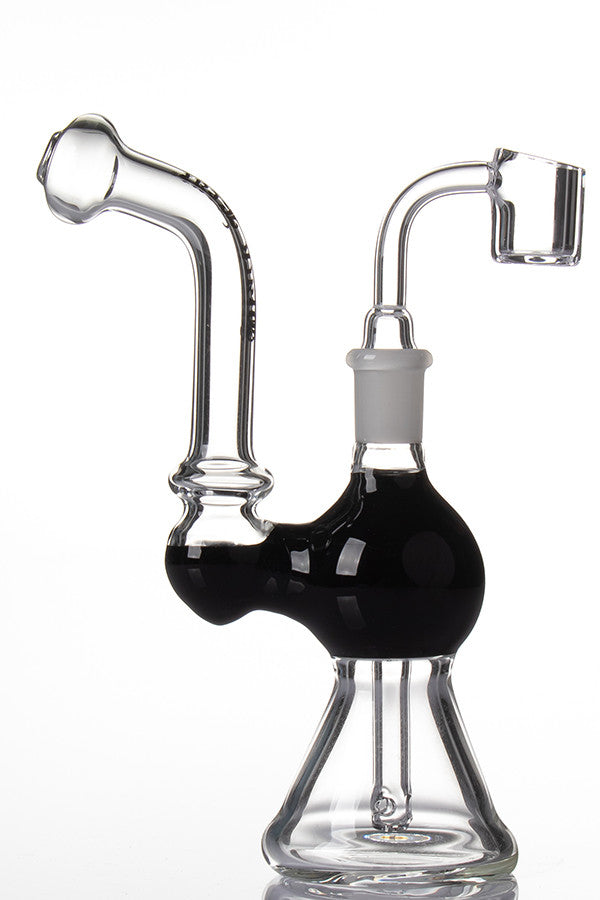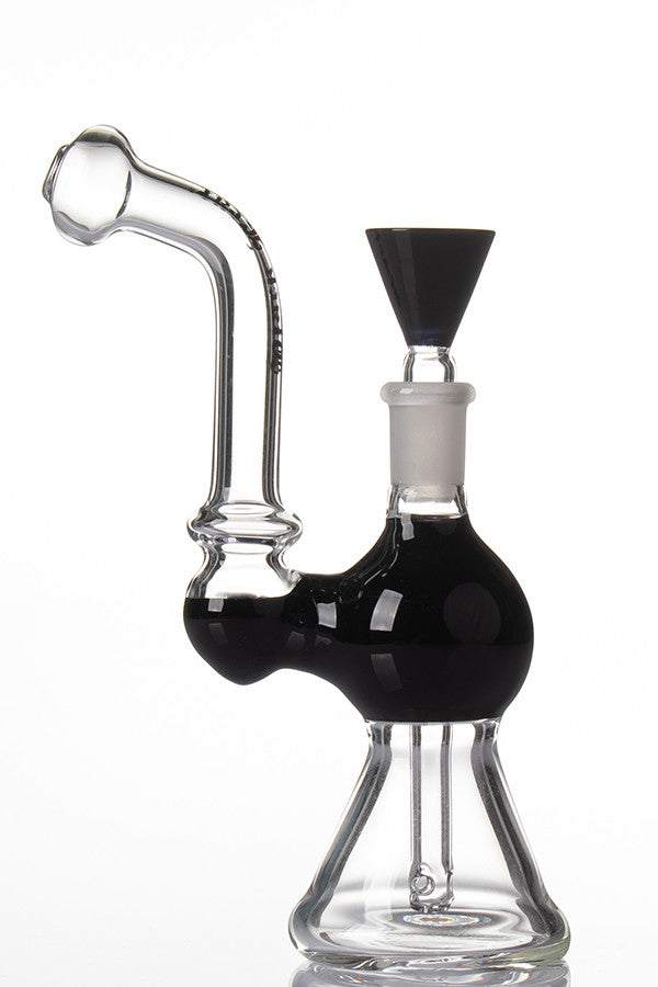 This Black Leaf bubbler dab rig can be used either for your favourite herb or oil, as it includes a quartz banger and a herb bowl. It hosts a fixed downstem with multiple holes that will allow for plenty of diffusion. Perfect dab rig for beginners and affordable enough to suit any budget.
