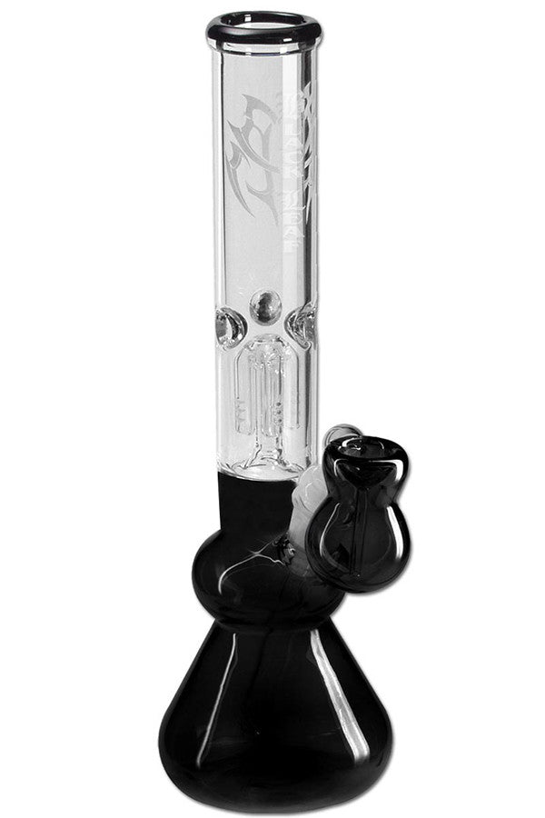 This Black Leaf Tree-Perc stands 30cm tall and is made from 3.2mm borosilicate glass. It features a tree percolator to help cool down the smoke which gives a much smoother experince compared with traditional non diffused models. It also includes a an ash catcher with an inbuilt bowl/cone, this will help to keep your glass cleaner for longer with regular water changes of the ash catcher.