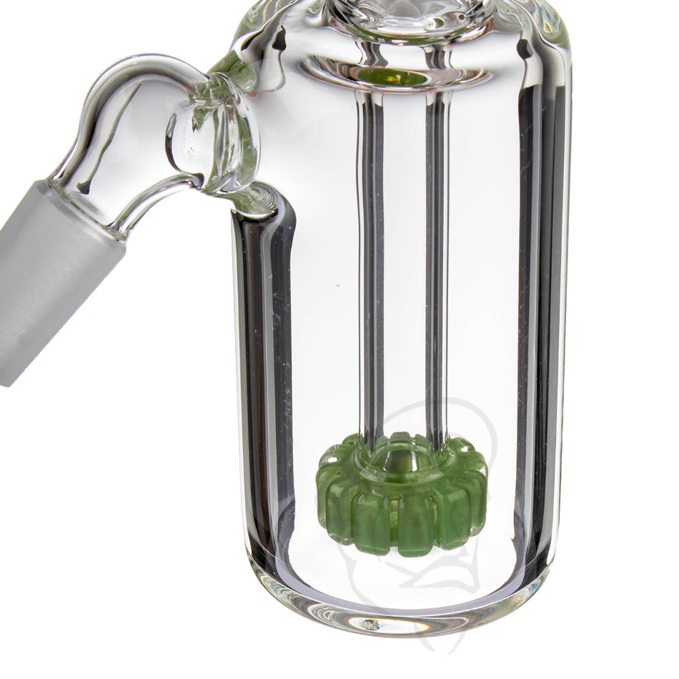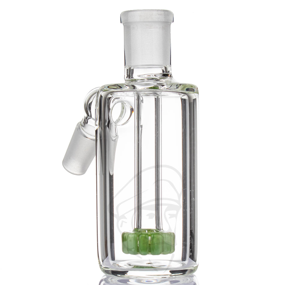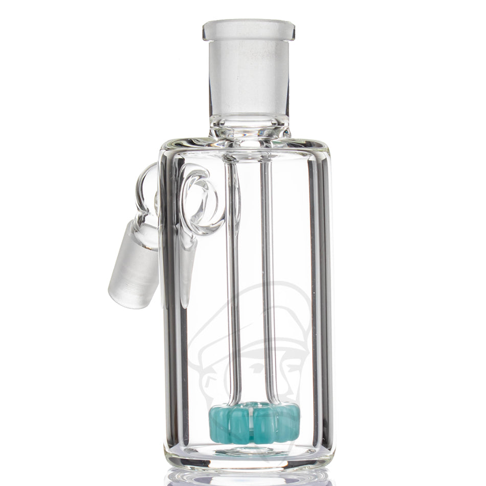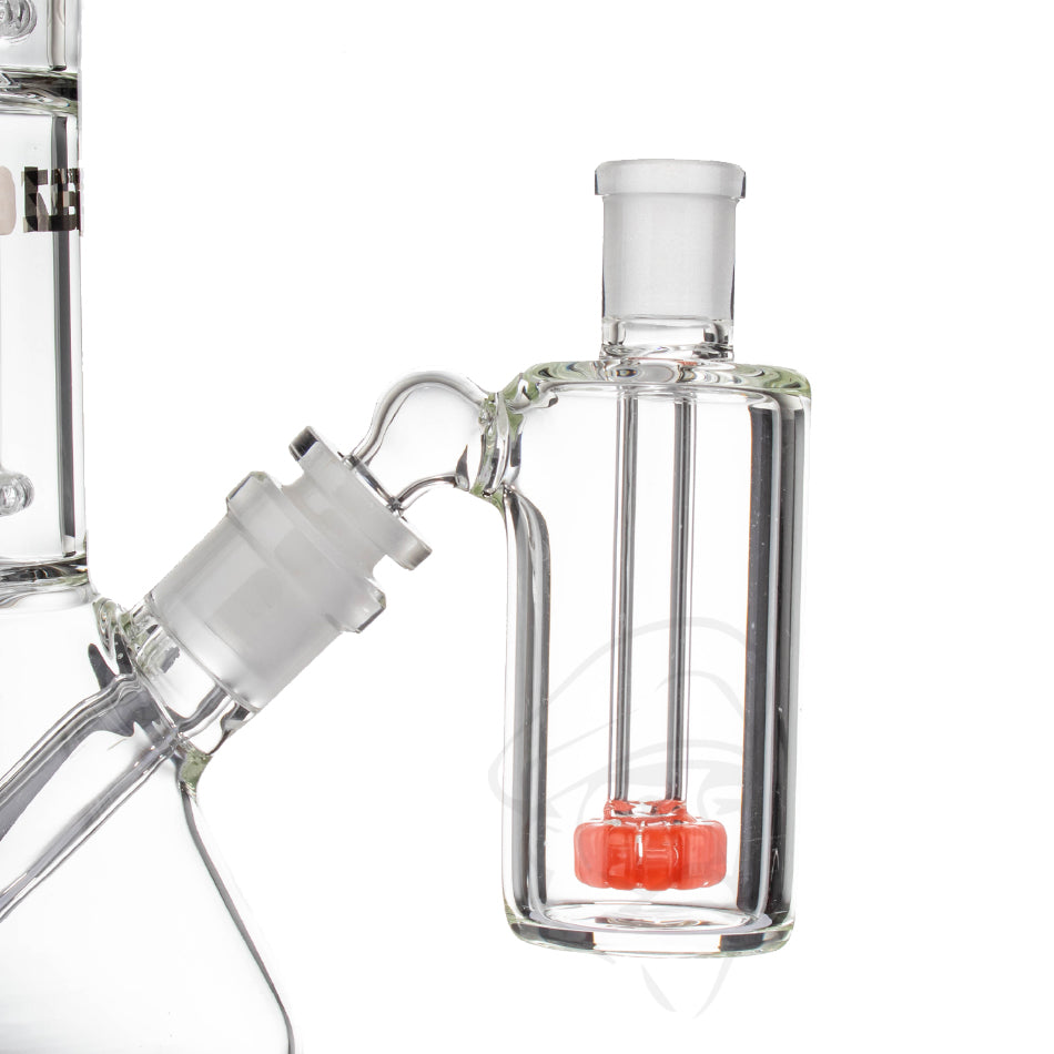 This Diffused ash catcher is designed with a showerhead diffuser and includes a 14mm male joint for connection to the bong, along with a 14mm female joint to fit your cone piece. The showerhead percolator enhances the cooling of the smoke, resulting in a smoother experience. In addition to effectively trapping ash and maintaining the cleanliness of your bong, it serves as an extra percolator, further cooling and refining your smoke.