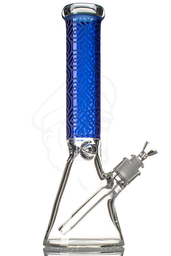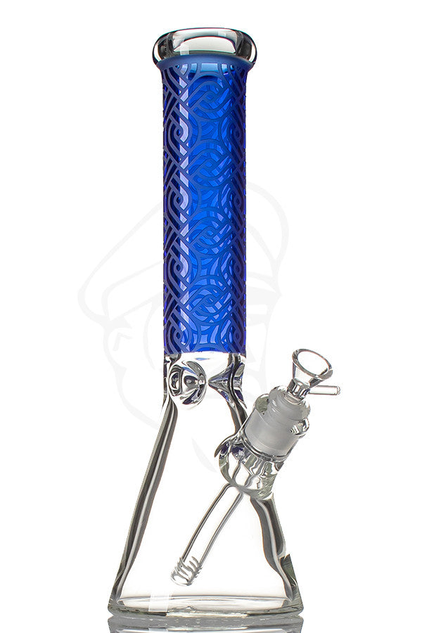 This Blasted glass beaker stands 35cm tall and is made from 5mm borosilicate glass. It hosts a diffused reducer downstem and a 14mm bowl/cone. The diffuser stem will create plenty of diffusion to help cool down and make the smoke smoother, it also has ice pinches which give you the added option of adding ice cubes to help cool the smoke down even further.