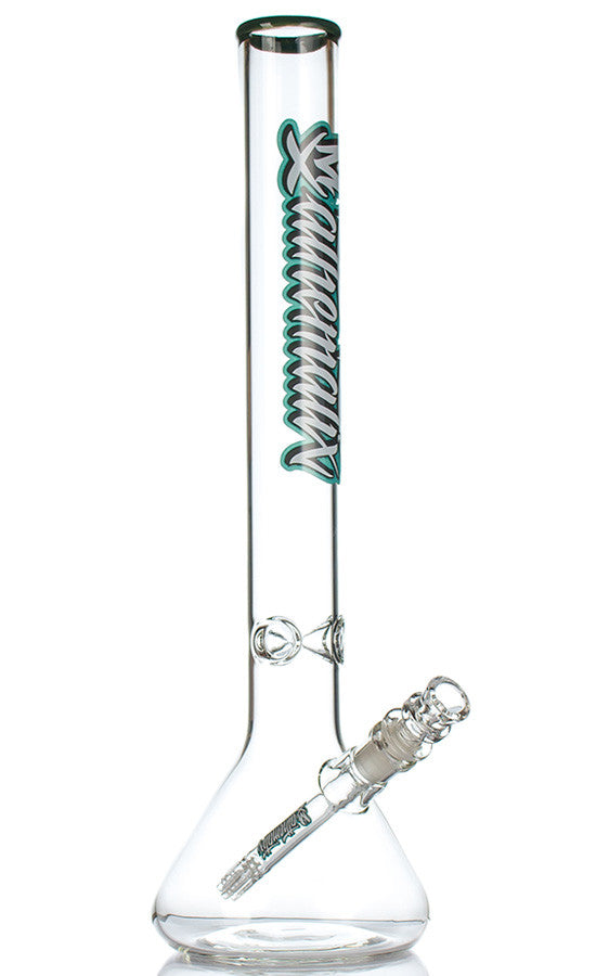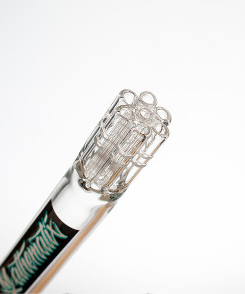 This beaker from Mathematix Glass stands 18 inches tall and features ice pinches, a 6 arm diffuser downstem and a snapper bowl. It is made from 5mm American glass that is hand made in California, USA. This is a perfect daily driver with its sturdy build and simple but effective design. All Mathematix Glass bongs are made from either American or German made high grade glass.