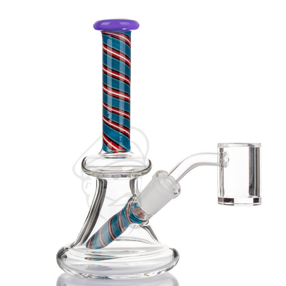 Experience the ultimate in dabbing with our Mini Spiral Dab Rig with Quartz Banger. This compact and stylish rig is designed to meet all your dabbing needs. Meticulously crafted with intricate glass-work, it adds a touch of sophistication to your smoking sessions. The included quartz banger ensures excellent heat retention for smooth and flavourful hits. Its small size makes it ideal for on-the-go use, while its durable construction ensures lasting performance. Elevate your dabbing game with our Mini Worked Dab Rig with Quartz Banger and indulge in the ultimate dabbing experience.