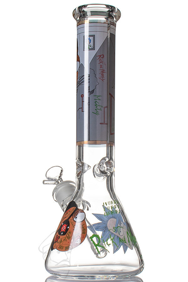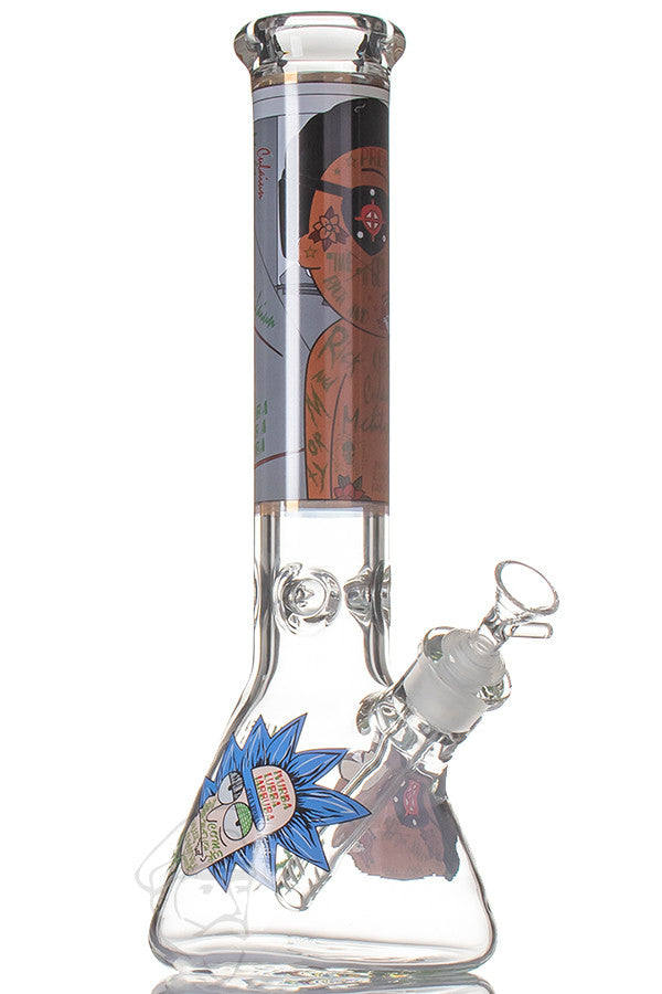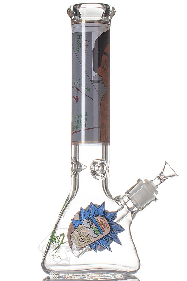 This R&M glass beaker stands 34cm tall and is made from 7mm borosilicate glass. It hosts a diffused reducer downstem and a 14mm bowl/cone. The diffuser stem will create plenty of diffusion to help cool down and make the smoke smoother, it also has ice pinches which give you the added option of adding ice cubes to help cool the smoke down even further.