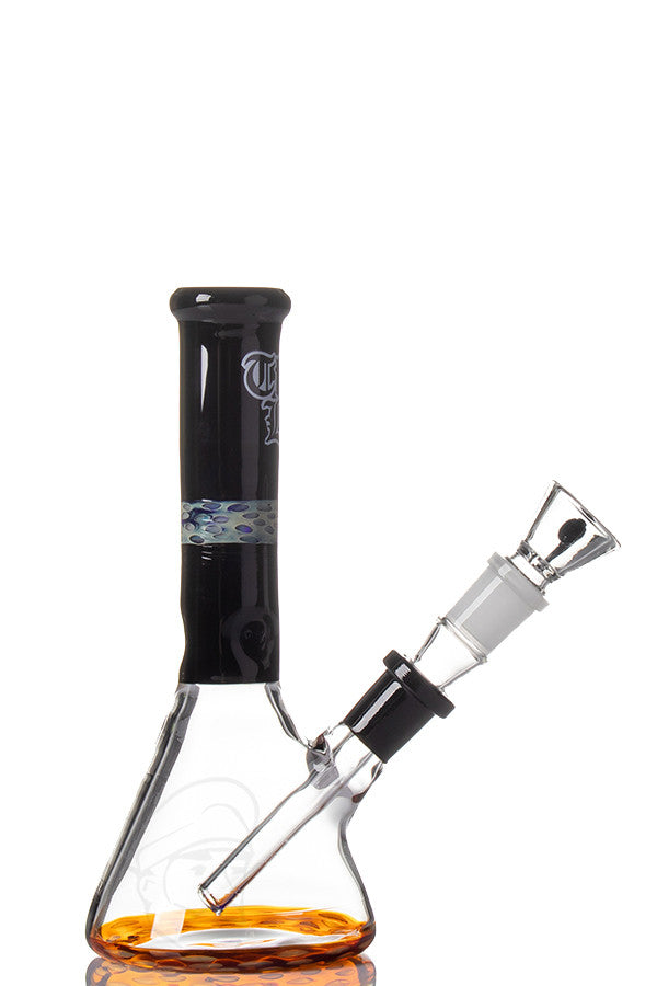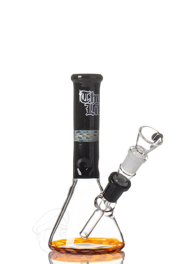 This glass mini beaker bong from Thug Life stands 22cm tall, this elegant looking glass bong would make a great daily driver for those who prefer a smaller capacity. It comes complete with a glass stem and cone.